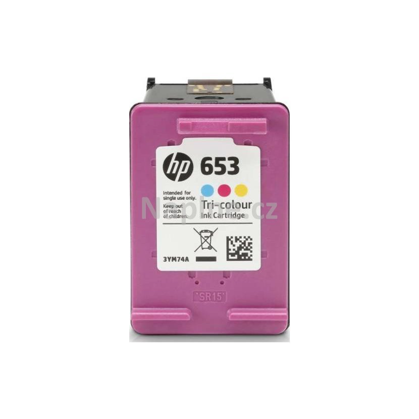 Originální cartridge HP 3YM74AE - 653 (color). Kapacita je 200 stran při 5% pokrytí tisku. Jiné používané označení tohoto produktu v ČR: Cartridge HP 3YM74AE / Zásobník HP 3YM74AE / Tisková kazeta HP 3YM74AE / Inkoust HP 3YM74AE / Náplň HP 3YM74AE / Cartridge HP 653 / Zásobník HP 653 / Tisková kazeta HP 653 / Inkoust HP 653 / Náplň HP 653.
