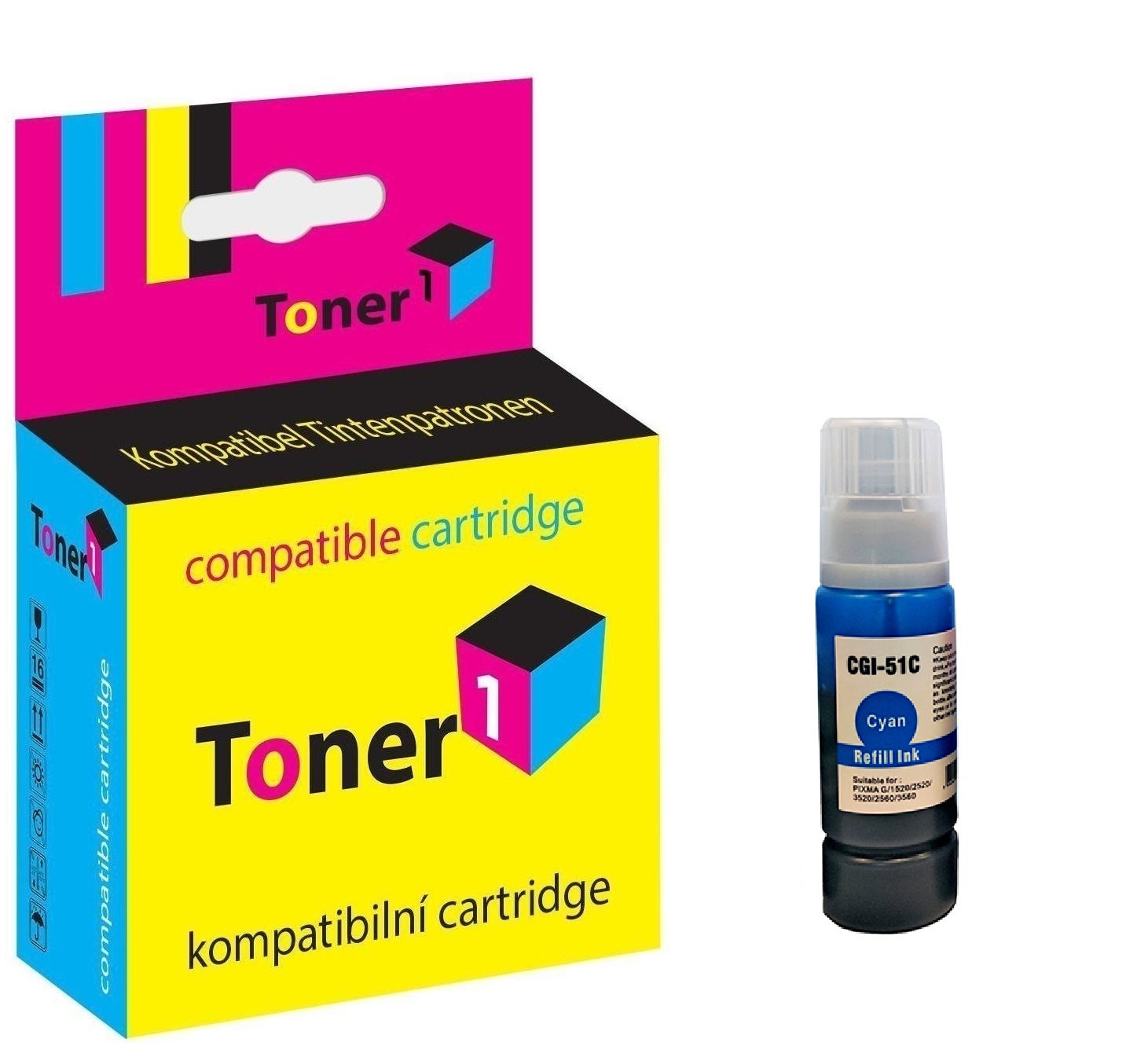 Kompatibilní inkoustová náplň Canon GI-51C (cyan). Kapacita je cca 7700 stran A4 při 5% pokrytí tisku. Kompatibilní inkoustová kazeta české firmy Toner1 je určena pro tiskárny Canon. Originální označení GI-51C. Vytiskne stejně kvalitně a s větším počtem stran jako originální náplň Canon 4546C001. Jiné používané označení tohoto produktu v ČR: Cartridge Canon GI51C / Zásobník Canon GI51C / Tisková kazeta Canon GI51C / Inkoust Canon GI51C / Náplň Canon GI51C / Cartridge Canon 4546C001 / Zásobník Canon 4546C001 / Tisková kazeta Canon 4546C001 / Inkoust Canon 4546C001 / Náplň Canon 4546C001 / Cartridge Canon GI-51C / Zásobník Canon GI-51C / Tisková kazeta Canon GI-51C / Inkoust Canon GI-51C / Náplň Canon GI-51C.